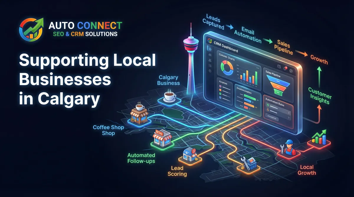Calgary has a competitive business environment with companies across many industries competing for online visibility. AutoConnect CRM works with businesses across Calgary to help them improve search visibility and attract more customers. As a dedicated SEO agency Calgary, we understand the importance of local search optimization, Google Maps visibility, and targeted keyword strategies.