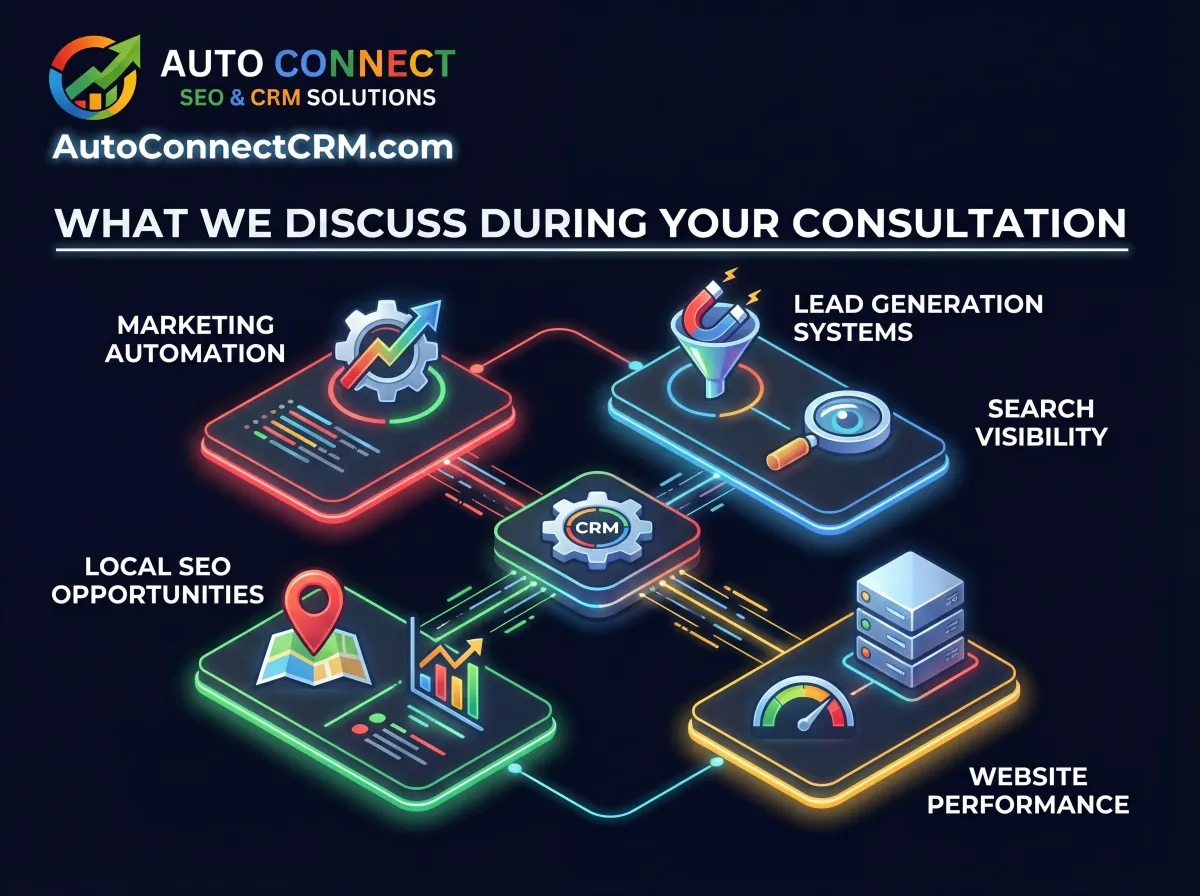 If you are searching for an SEO consultation Calgary, our team at AutoConnect CRM can help you evaluate your current marketing systems and identify opportunities to improve your digital presence.