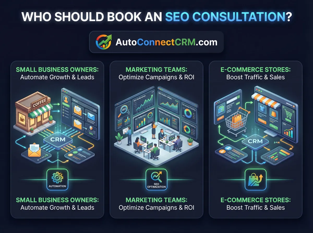 Get clarity on how an SEO consultation Calgary with Contact AutoConnect CRM works before you book.