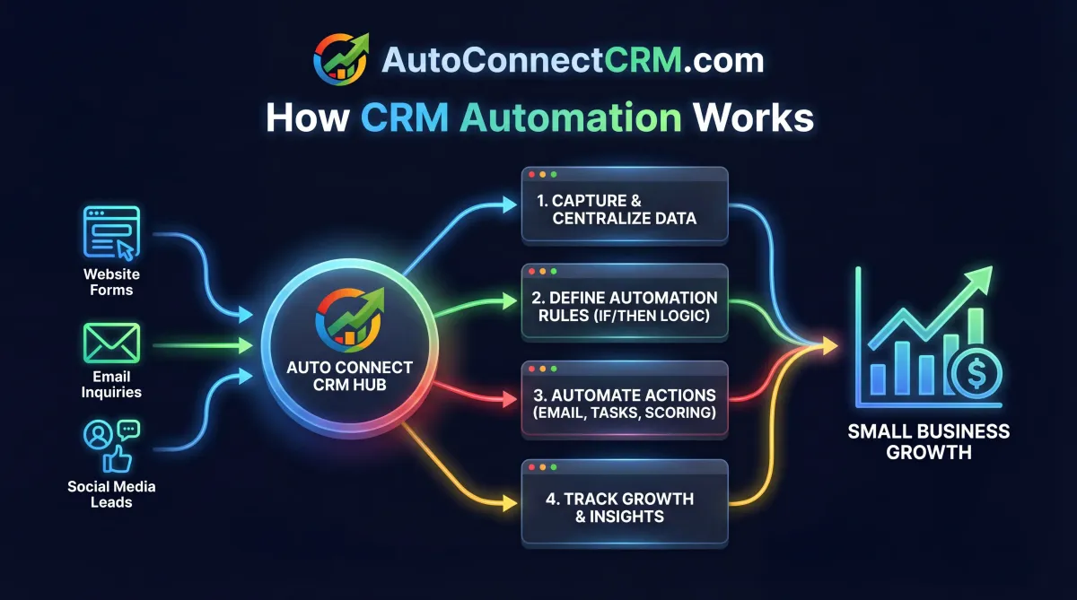 At AutoConnect CRM, we help businesses implement automation systems that track leads, manage communication, and generate consistent growth.