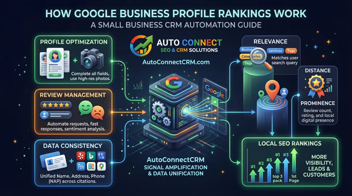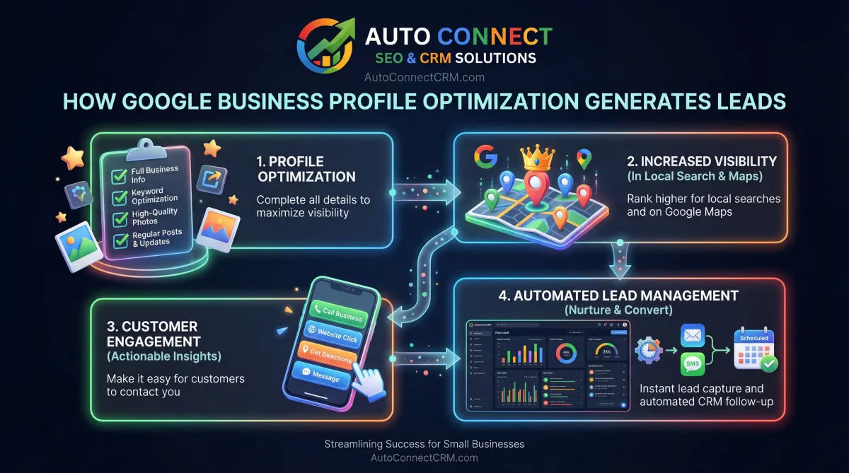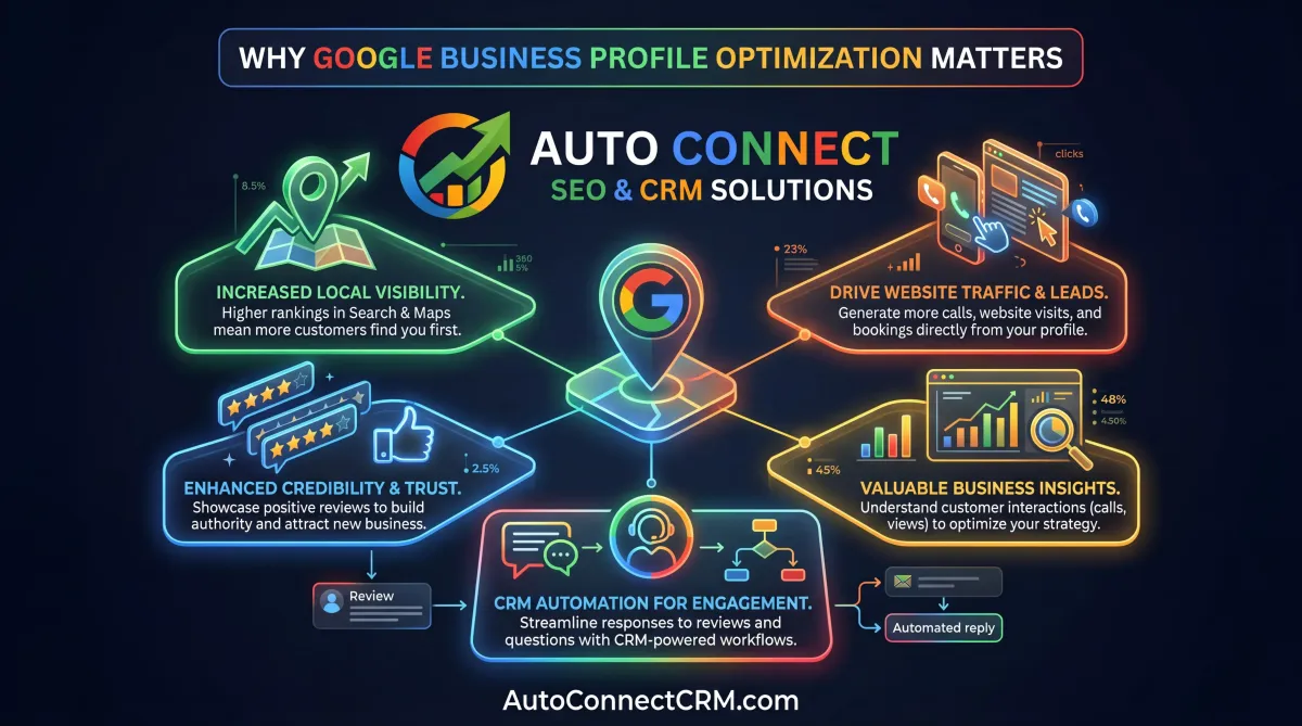 AutoConnect CRM helps businesses optimize their Google Business Profiles to improve rankings, generate leads, and support long-term digital marketing growth.