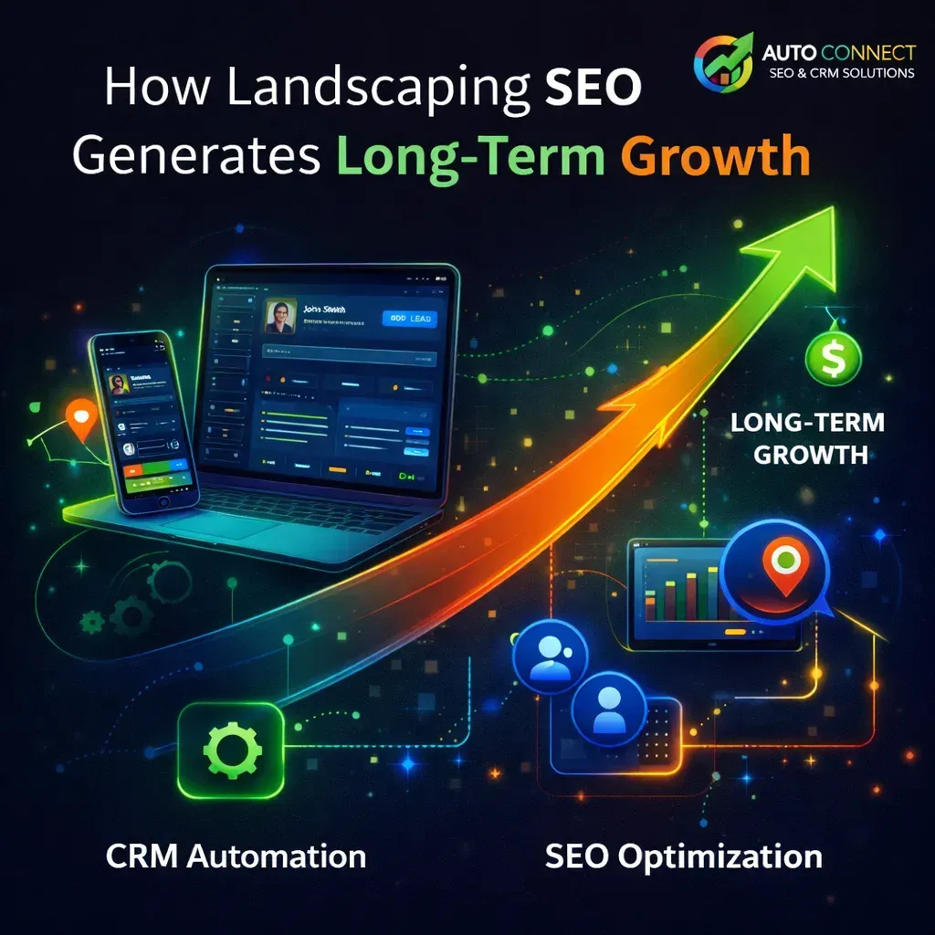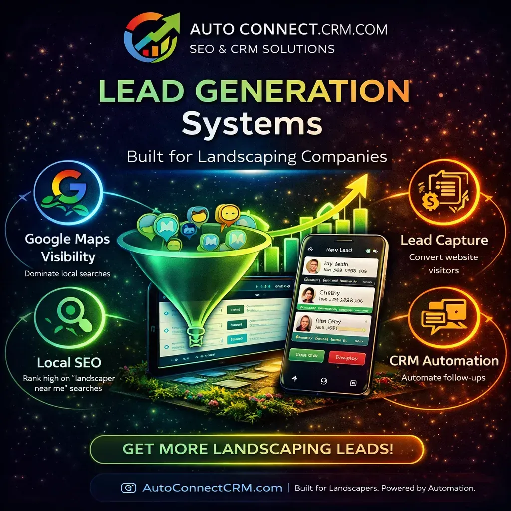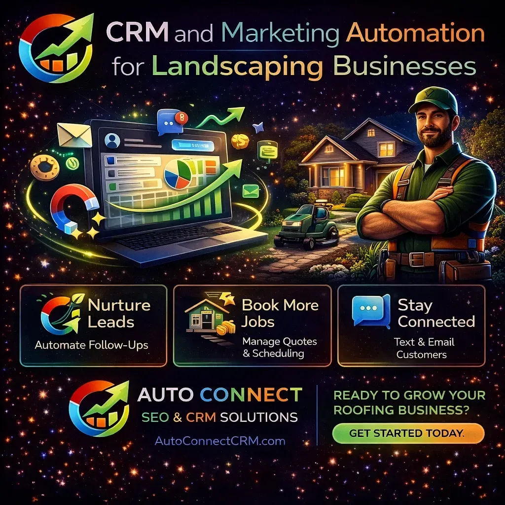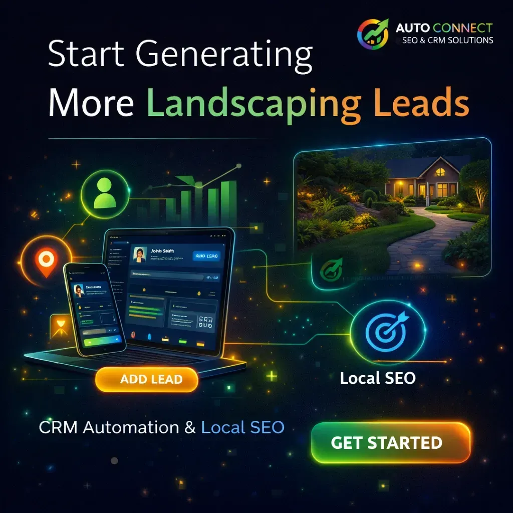 AutoConnect CRM provides landscaping businesses with tools and strategies designed to improve search visibility, generate leads, and manage customer inquiries effectively.