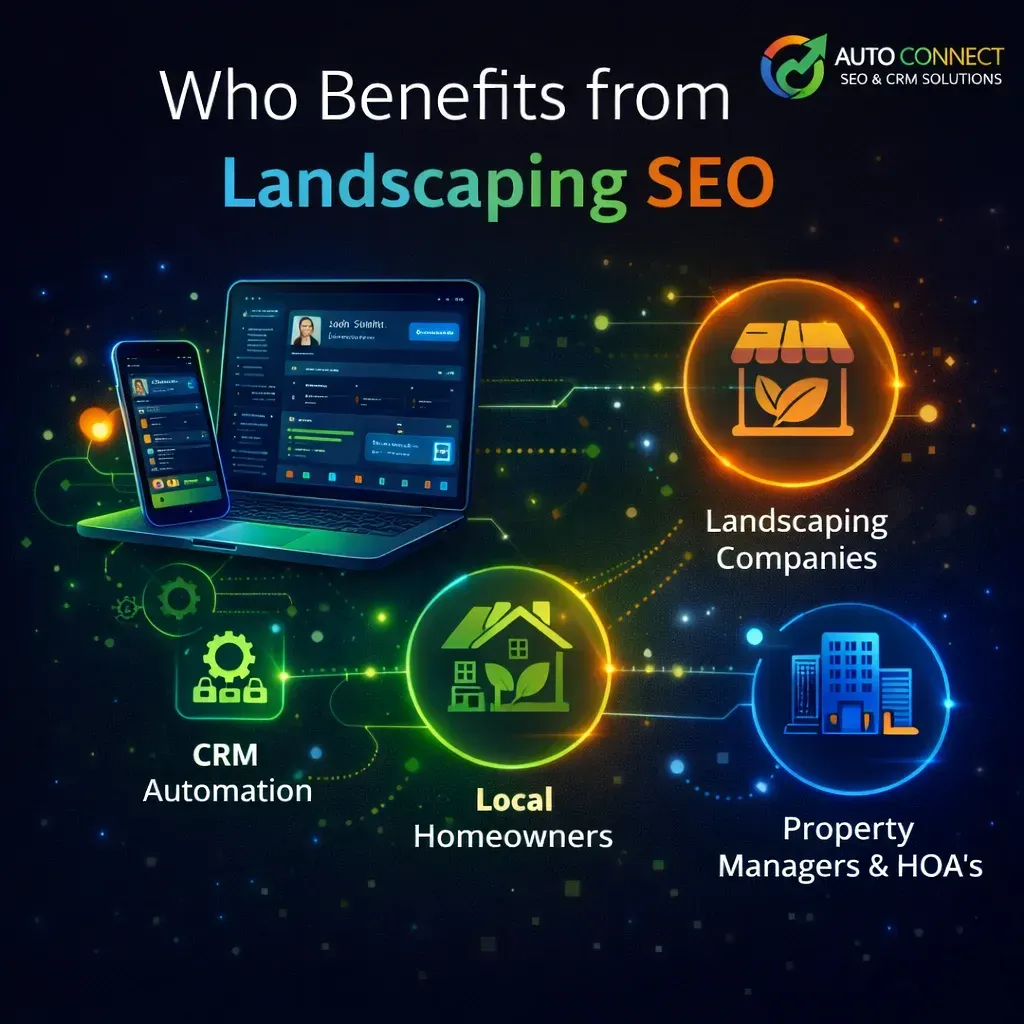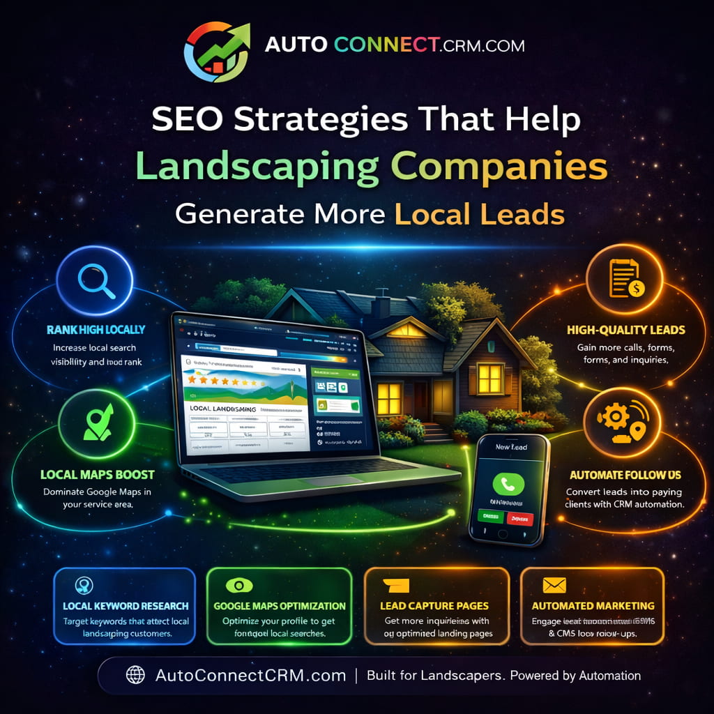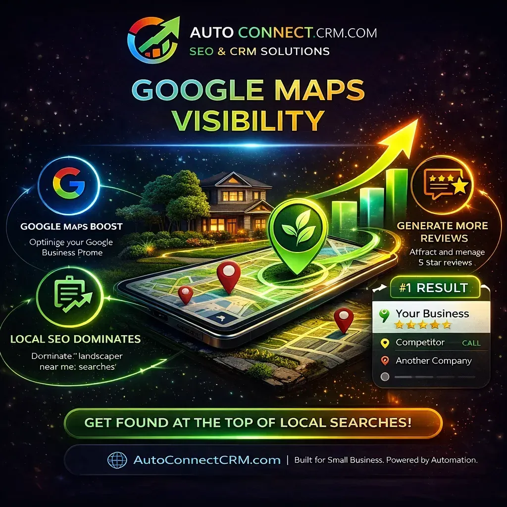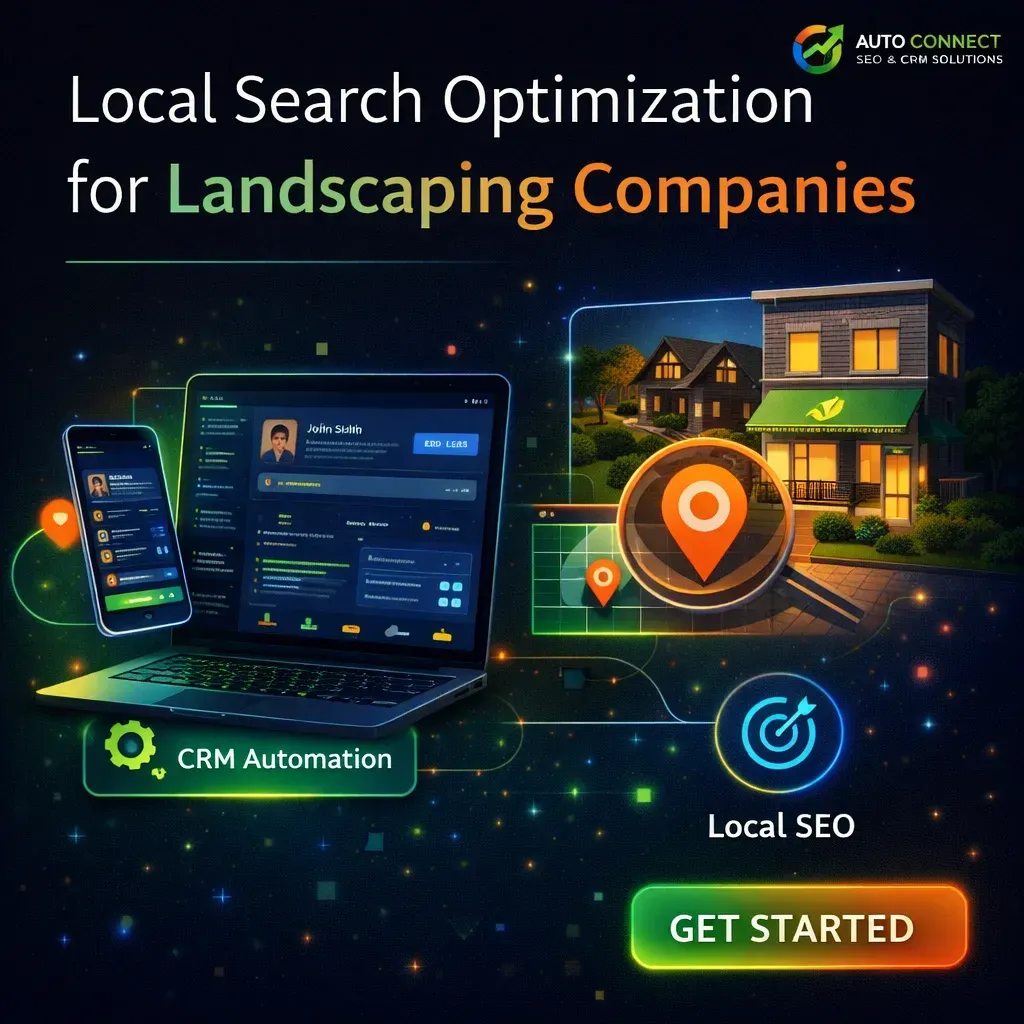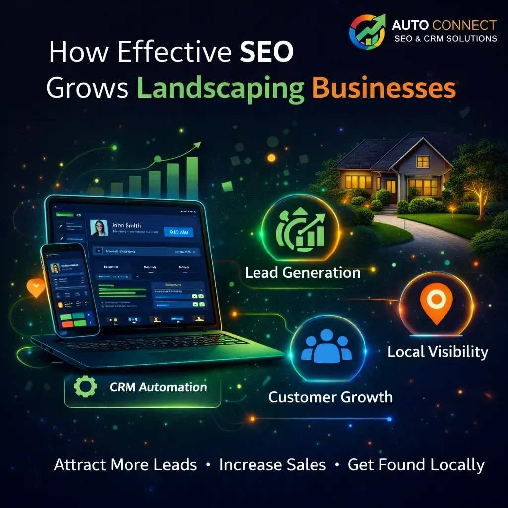 AutoConnect CRM provides landscaping businesses with tools and strategies designed to improve search visibility, generate leads, and manage customer inquiries effectively.