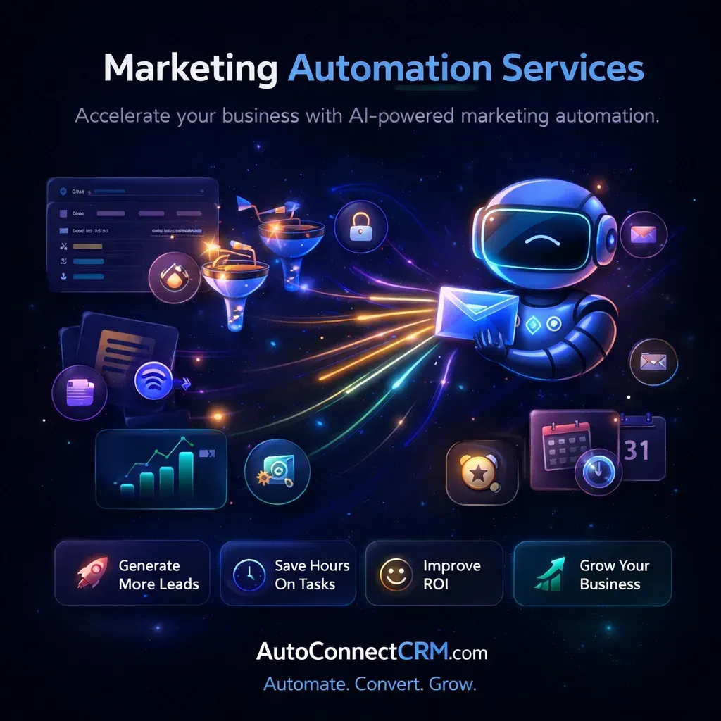 What Our Marketing Automation Services Include AutoConnect CRM provides tools designed to help businesses create automated marketing systems that manage leads and communication effectively.