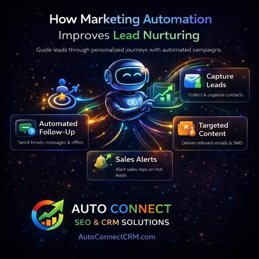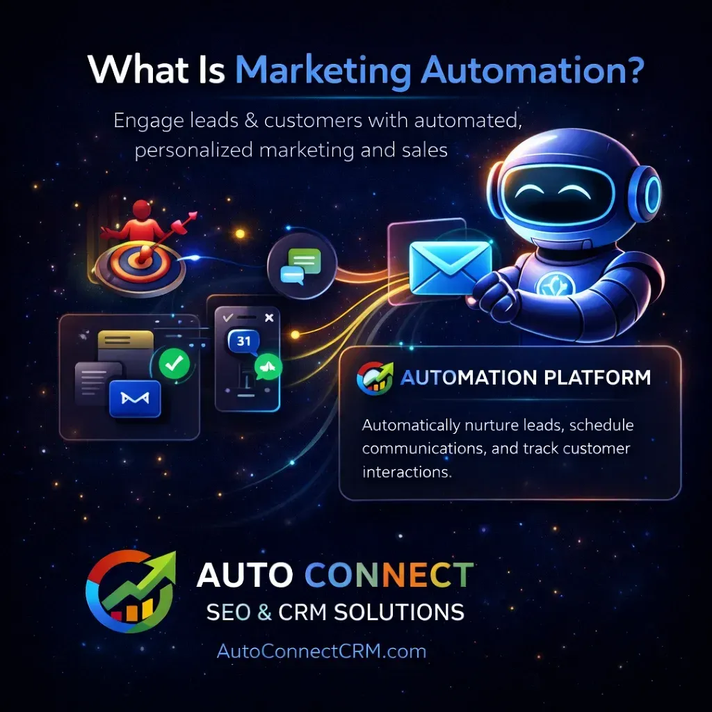 Build Your Automated Marketing System Businesses searching for marketing automation services are usually looking for ways to improve marketing efficiency and maintain better communication with leads. By implementing marketing automation for small businesses, companies can build systems that capture leads, automate follow-ups, and nurture prospects through the sales process. AutoConnect CRM provides businesses with powerful automated marketing systems designed to simplify marketing operations while improving customer engagement.