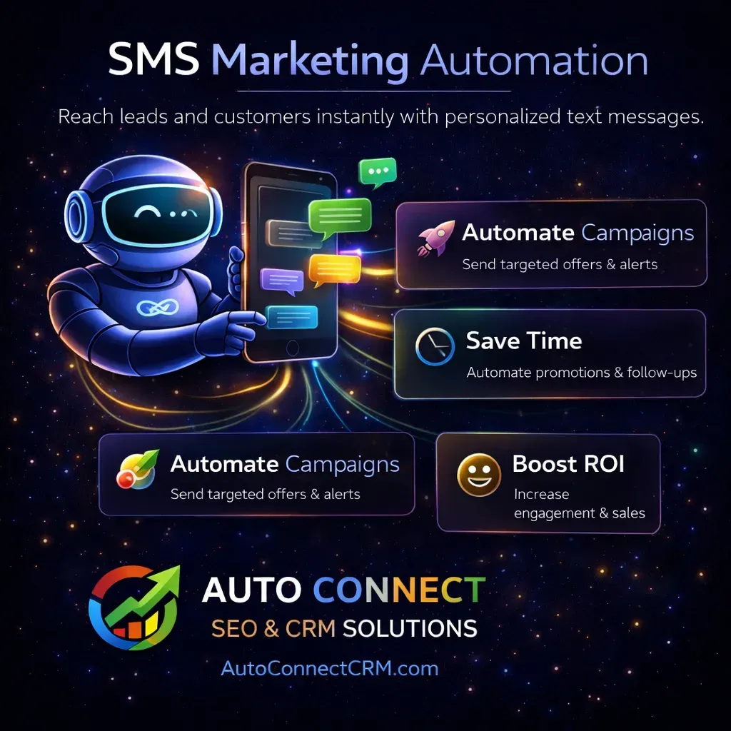 SMS Marketing Automation Text messaging is one of the fastest ways to reach customers. SMS automation allows businesses to send instant messages for appointment reminders, service updates, or follow-up communication. Using CRM marketing automation, businesses can send automated SMS messages that improve response rates and keep customers engaged. Automated messaging ensures that no lead is left waiting for a response.