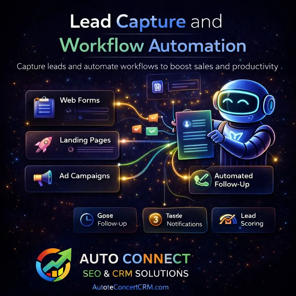 Lead Capture and Workflow Automation Capturing leads is the first step in the marketing process, but managing those leads efficiently is equally important. Our automated marketing systems integrate with websites, landing pages, and advertising campaigns to ensure that every new inquiry enters the CRM platform. Once captured, leads can be automatically assigned to workflows that send follow-up messages, schedule reminders, or trigger marketing campaigns. This process helps businesses maintain organized communication with potential customers.