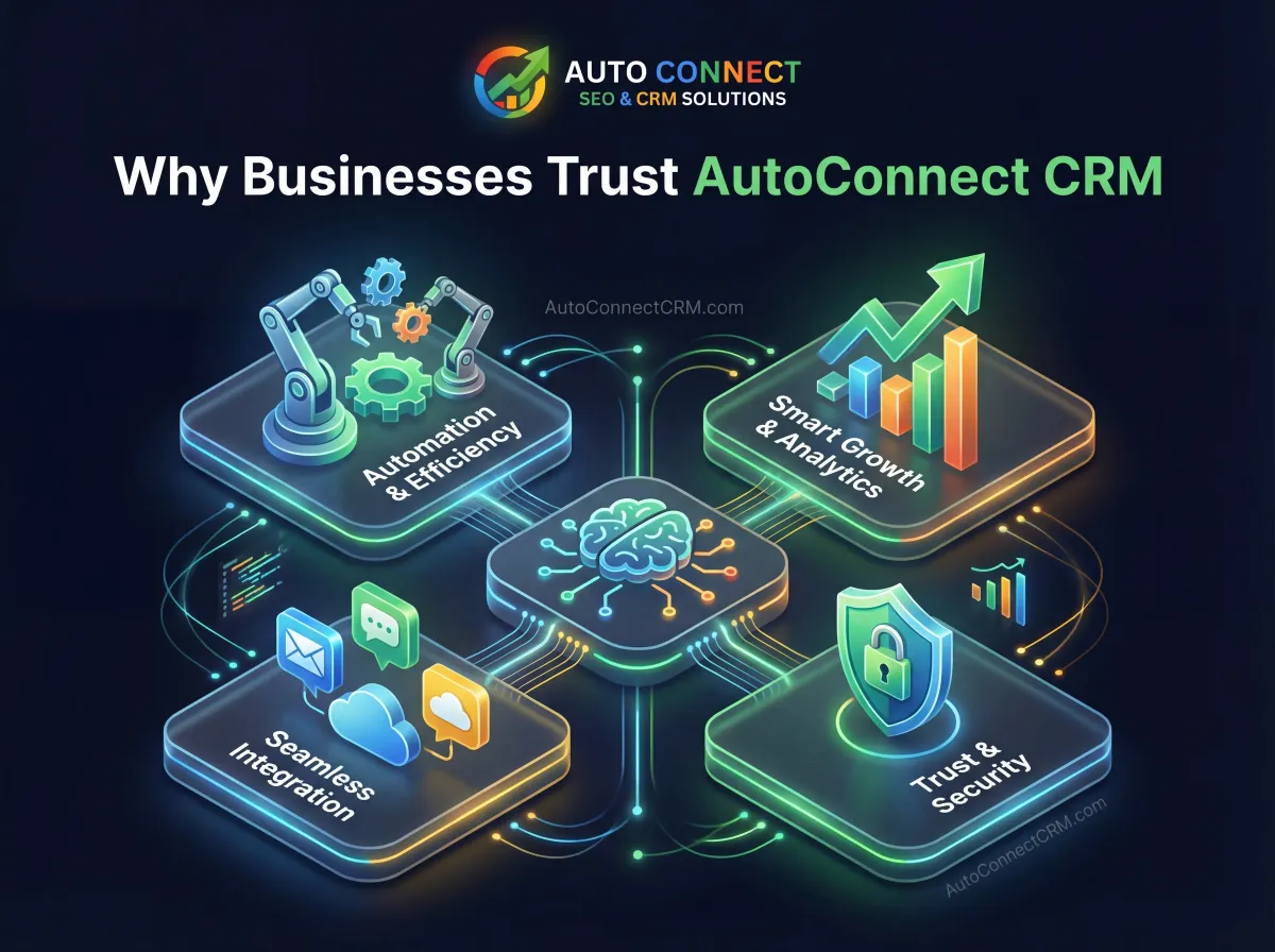 AutoConnect CRM focuses on helping businesses build integrated marketing systems that combine search visibility, lead generation, and automation.