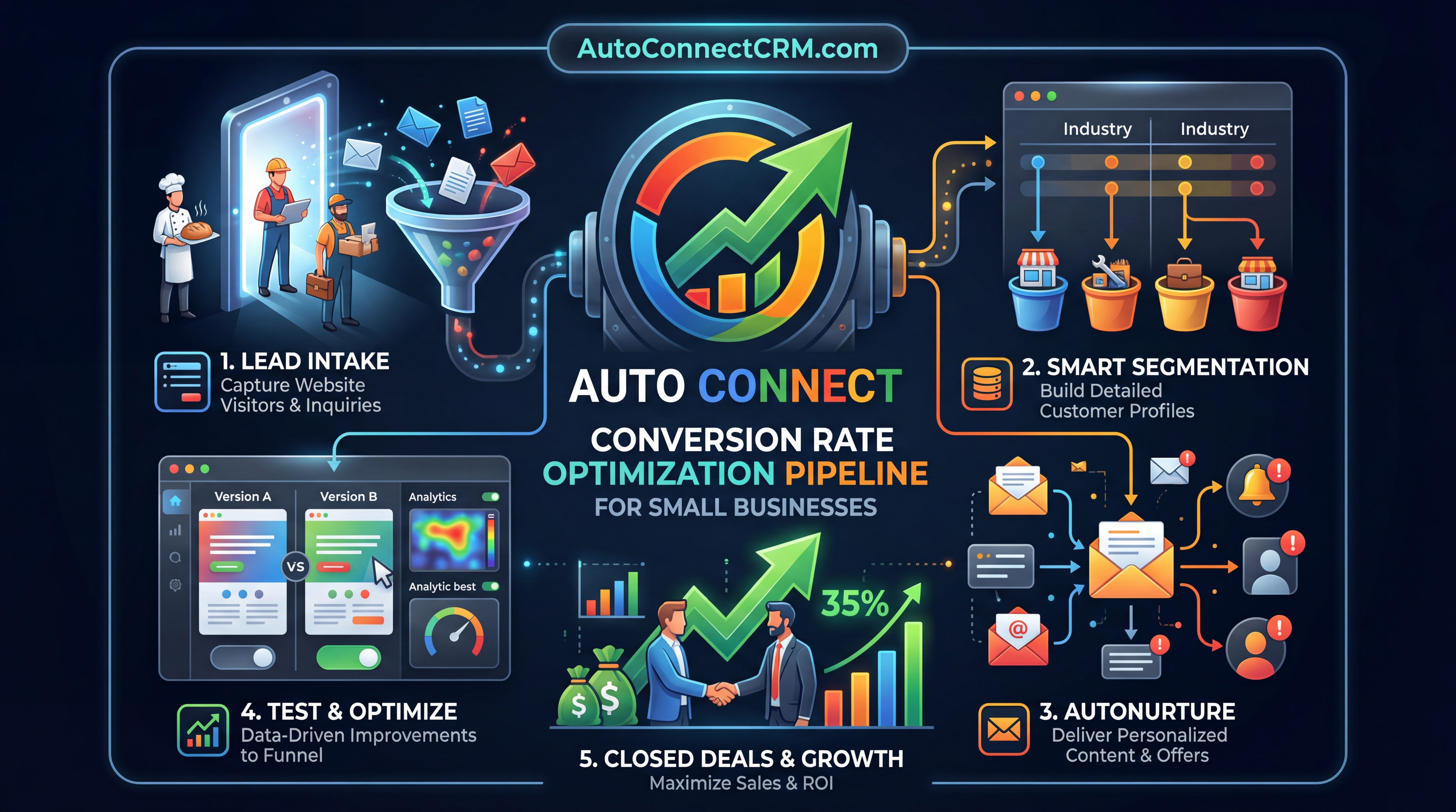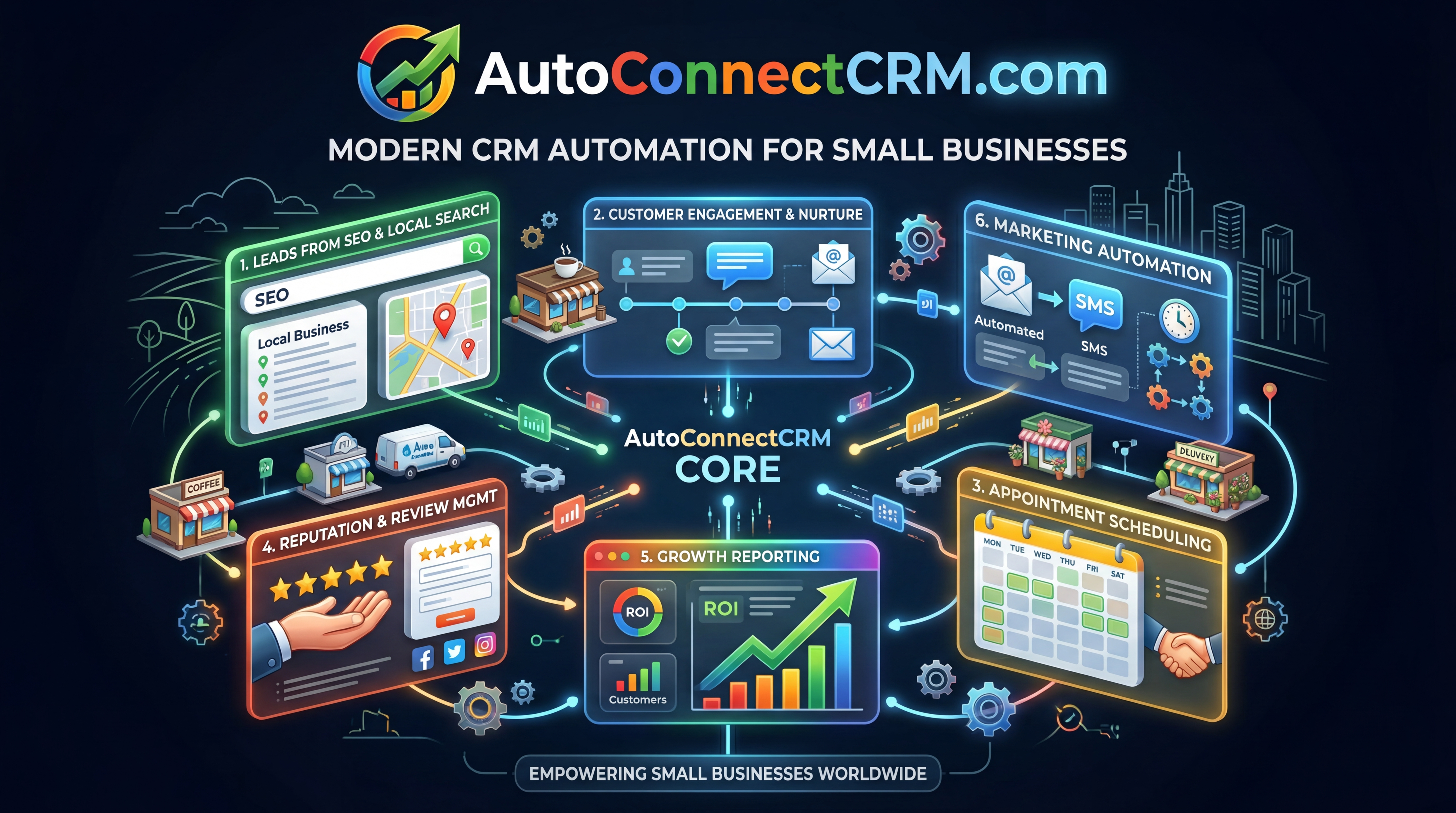 AutoConnect CRM integrates automation tools that allow businesses to: