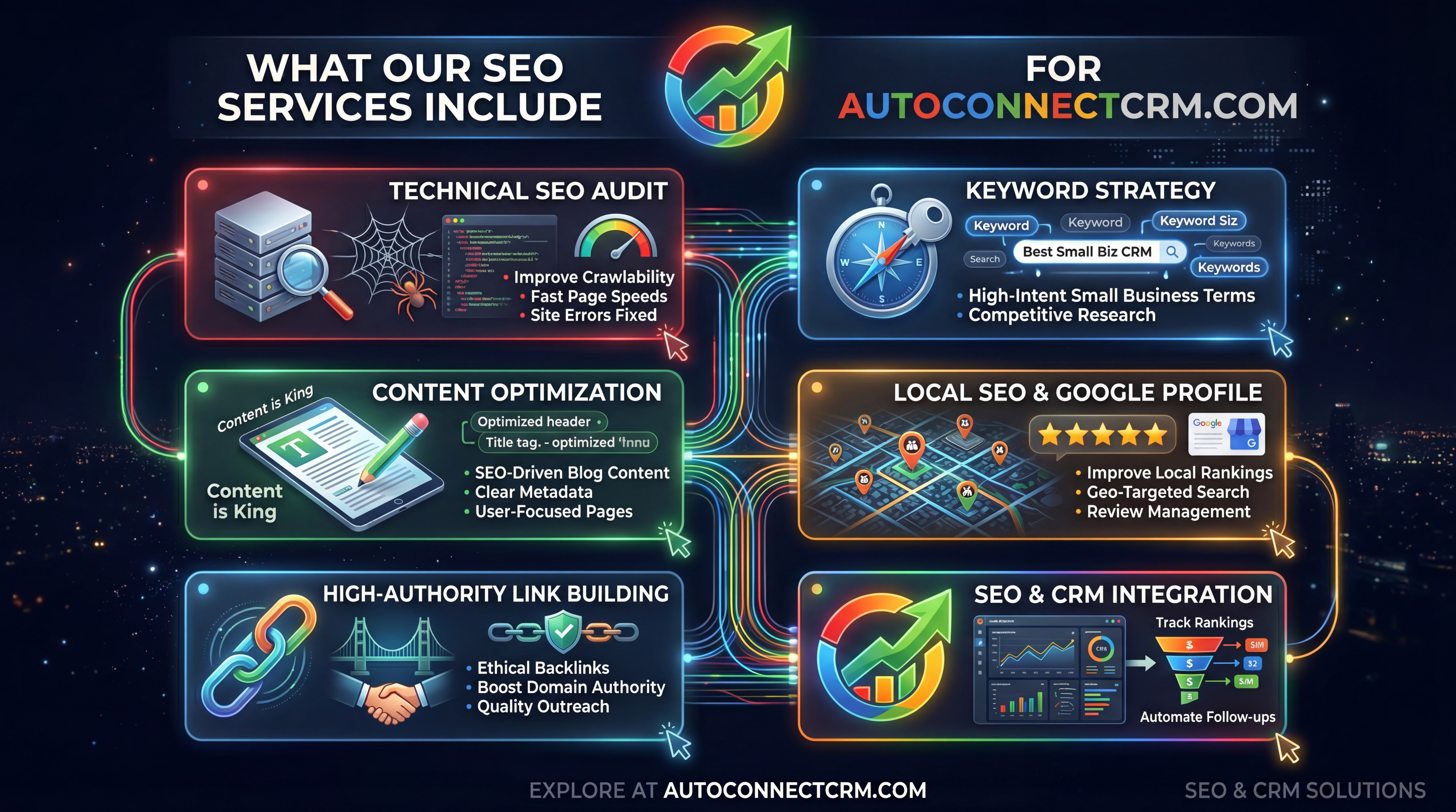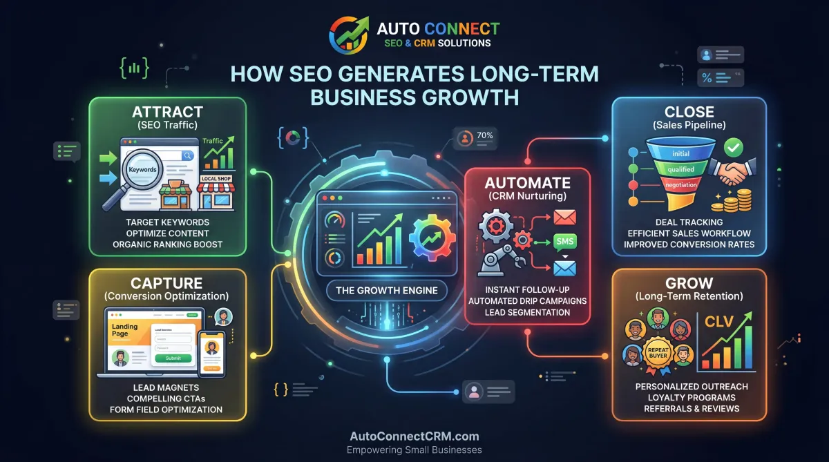 At AutoConnect CRM, our SEO strategies focus on both search visibility and lead generation.