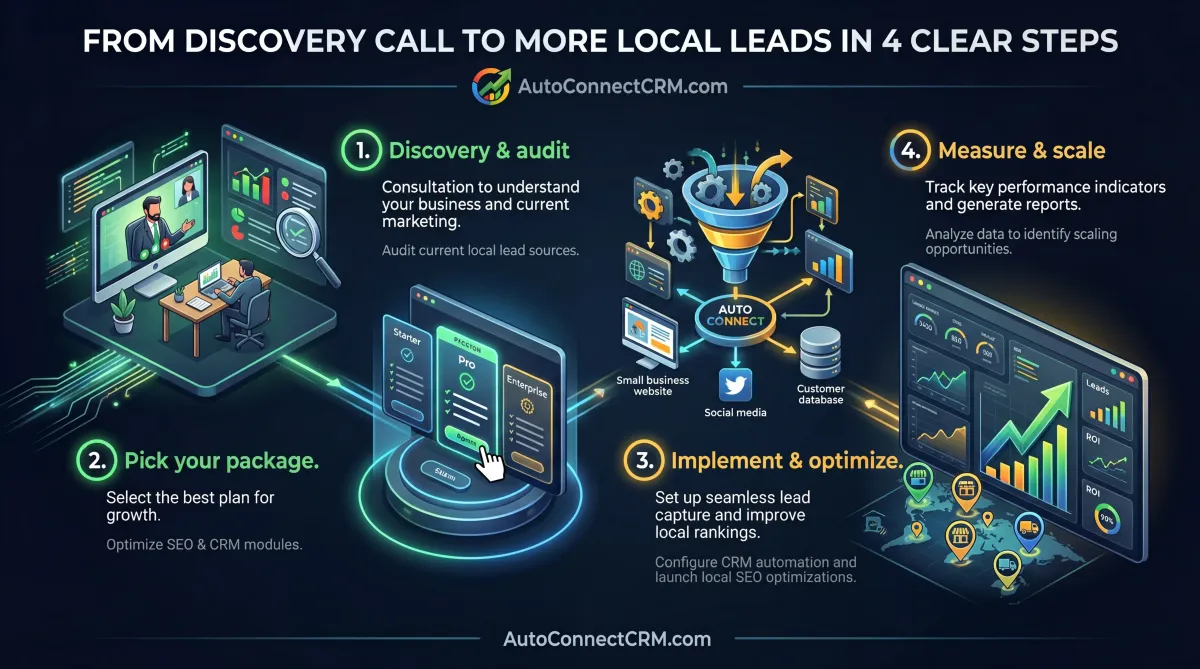 We recommend the best SEO package for your goals and budget, and finalize your target neighbourhoods and services.