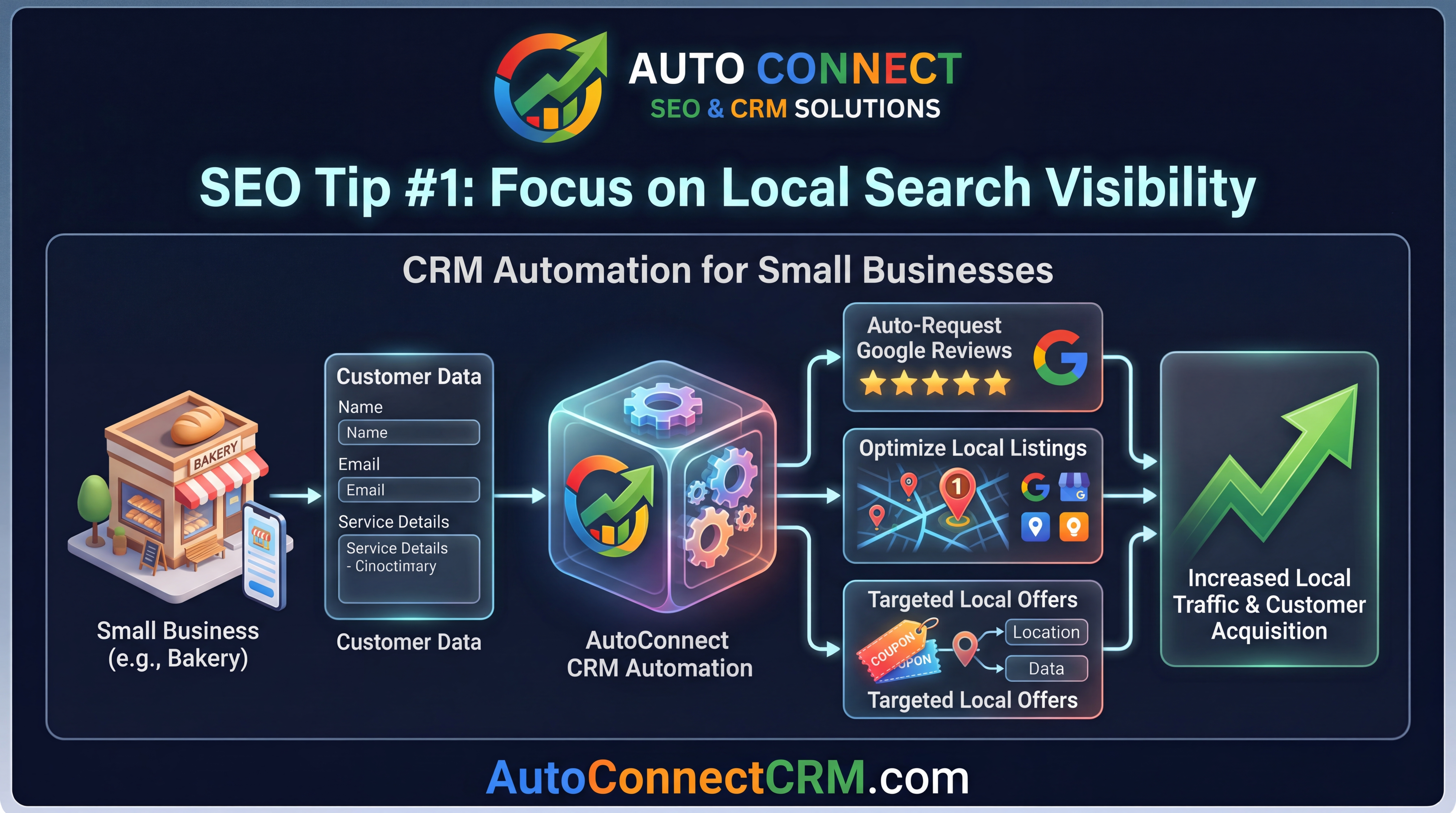 At AutoConnect CRM, we help small businesses understand how SEO works and how they can build marketing systems that generate consistent leads.